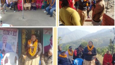 मंसिर ४ गते हुने चुनावमा नेकपा एमालेका प्रतिनिधीसभा क्षेत्र नम्बर-१ का उम्मेदवार कमल थापा, क्षेत्र नम्बर-१ को (क) का उम्मेदवार कमल विष्ट, (ख) का उम्मेदवार एकालाल श्रेष्ठ, क्षेत्र नम्बर-२ का उम्मेदवार महेशकुमार बर्तौला, क्षेत्र नम्बर-२ को (क) का उम्मेदवार विष्णु प्रसाद ढकाल र (ख) का उम्मेदवार लालबहादुर थापालाई मतदान गर्न सबैलाई आह्वान गराउनुभयो ।