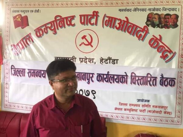 हेटौडा । माओबावी केन्द्र मकवानपुरका नेता प्रल्हाद लामिछाने केन्द्रिय सदस्यमा मनोनित भएका छन् । सोमबार माओबादी केन्द्र मकवानपुर जिल्ला समन्वय समितिको बैठकमा लामिछाने केन्द्रिय सदस्य भएको सर्कुलर आएको हो ।
