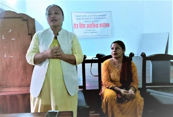 कार्यक्रममा बोल्दै बागमती प्रदेशसभा सदस्य एंव नेकपा माओवादी केन्द्र बागमती प्रदेश उपाध्यक्ष प्रेम बहादुर पुलमाी ‘छिन्तु’ ले हिन्दु नारीहरुले मनाउने तीज धार्मिक, सामाजिक सहिष्णुताका कारण अहिले सबै महिलाहरुले मनाउने गरेको राम्रो विषय रहेको बताएका छन् । तर, पछिल्लो समय तीजलाई मौलिकभन्दा पनि अरुको देखासिखी गरेर मनाउने चलनले तीजको महत्व कम भैरहेको उनले बताए ।